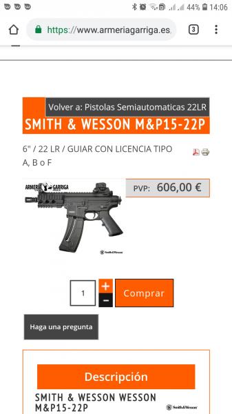 Un Smith & Weson model M&P15 pistol del calibre 22.