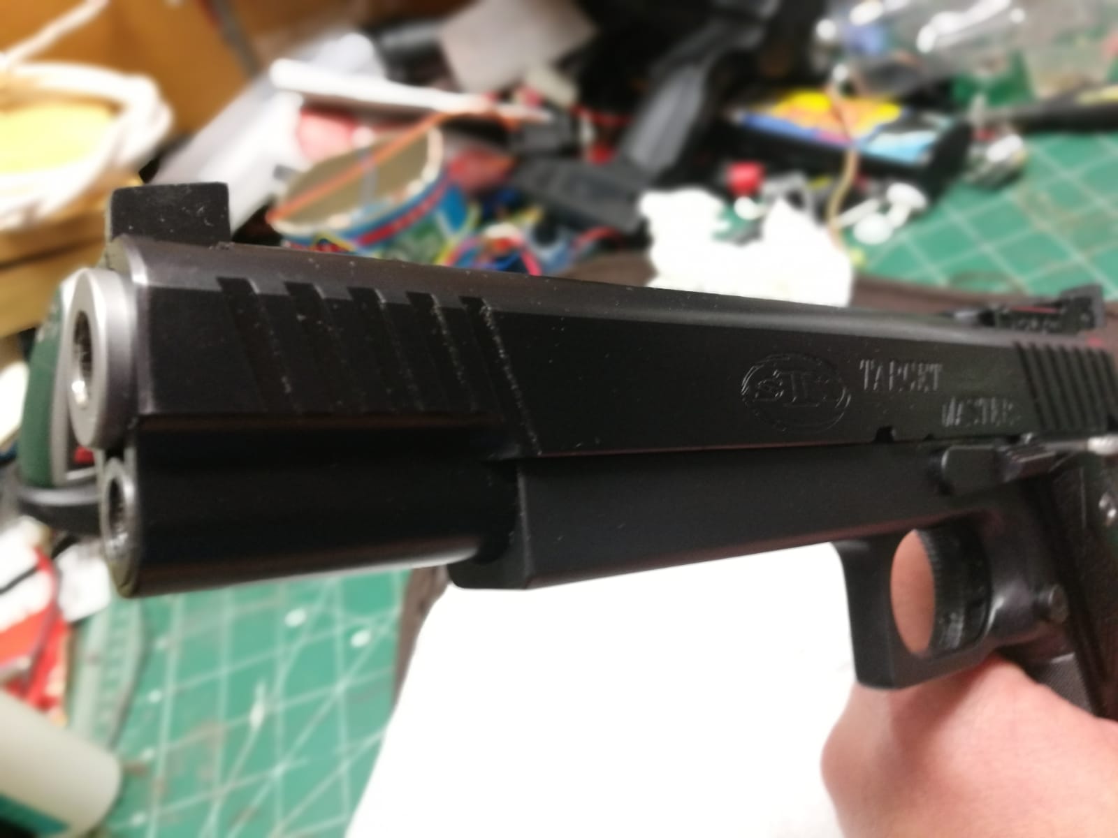 Un amigo mio pone a la venta su STI Target Master de 6". La compro la probo y sin haber realizado ni 150 disparos con ella se acabo decantando por una SW 952.