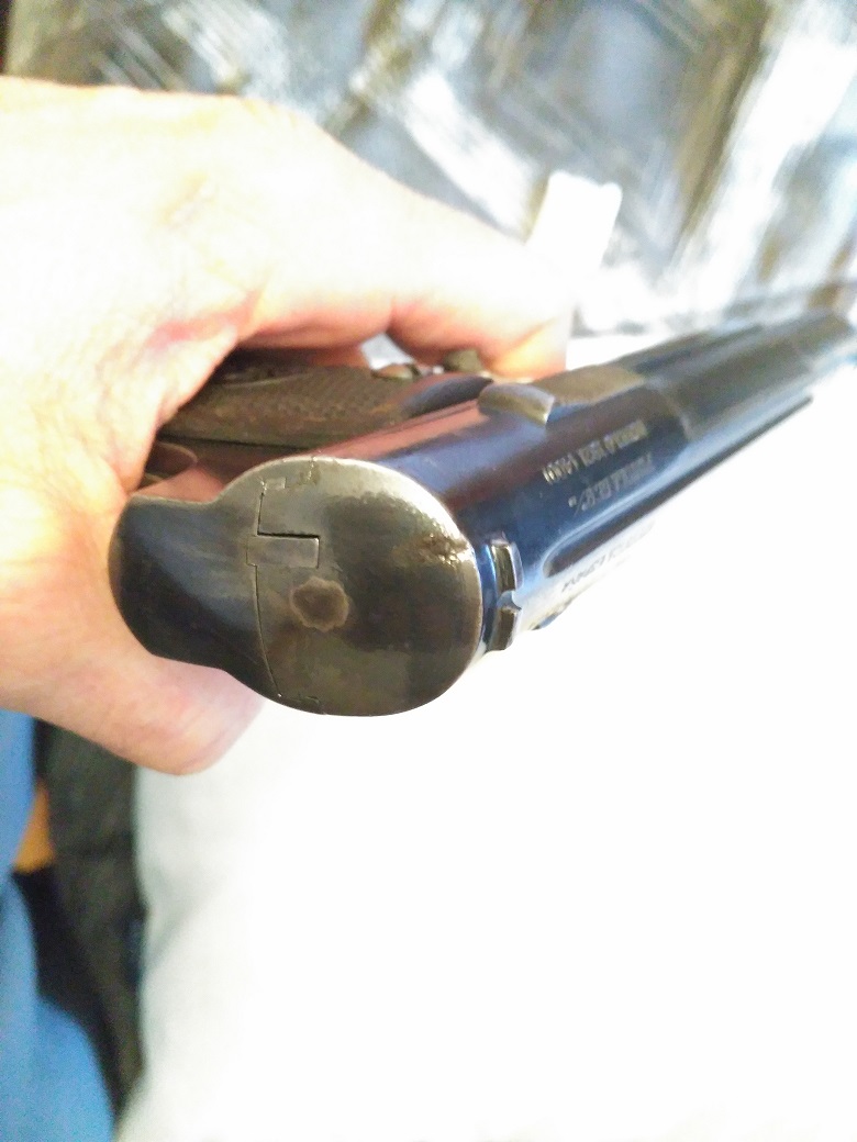 Tiene dos cargadores. Uno sin marcas. El otro numerado y marcado Astra pero no coincide con la pistola. En el cañón pone 9 mm y 38. Las vainas no las he llegado a usar pero me dijeron que apenas tenían dos recargas .