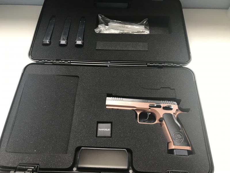 Se vende Tanfoglio Stock 3 Xtreme comprada nueva en Febrero del 2018.El arma está afinada en armería para recorrido de tiro ,cambiados muelles por ligeros,aguja larga Xtreme y martillo Titán.Se entrega con recambios Xtreme(martillo Delta,2 puntos de mira adicionales de fibra y normal,muelles de guía 9lb y 10lb(Toni System),11lb y 12lb Tanfoglio, muelles de aguja y de martillo Xtreme)y 4 cargadores así como con su maleta original.Precio 1200€