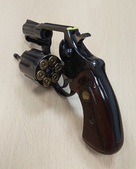 El modelo del arma es Trident, una versión del Colt Detective Especial.