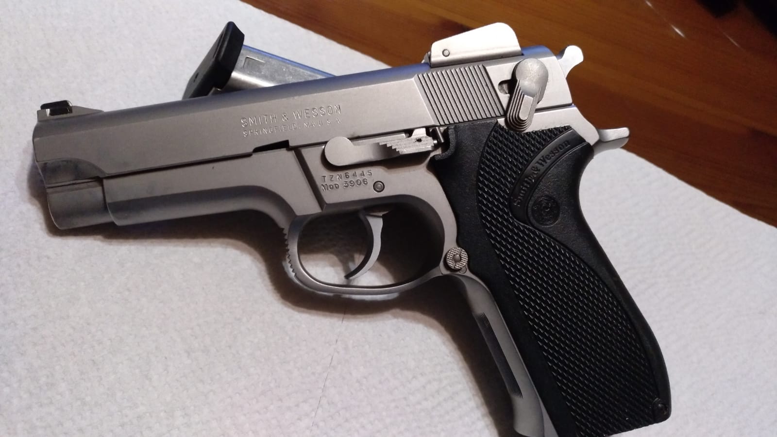 Al tema un amigo del club me pide que ponga a la venta una 9mm s&w 4" con gatillo afinado y puesta 02
