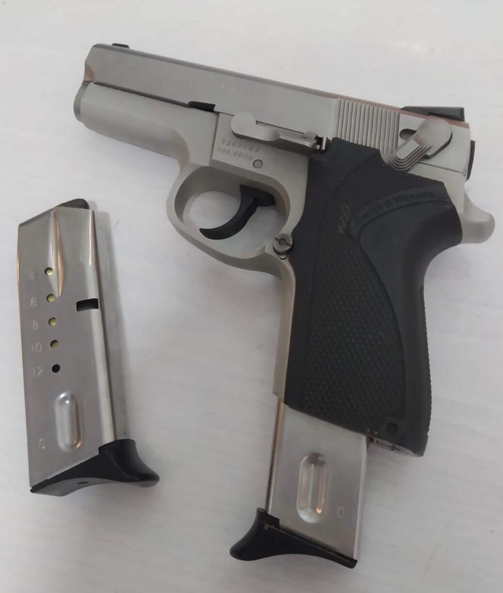 Se VENDE esta preciosa pistola SMITH & WESSON 6906, en acabado acero inoxidable, del calibre 9mm PB, con capacidad de 12+1 cartuchos, con dos cargadores.