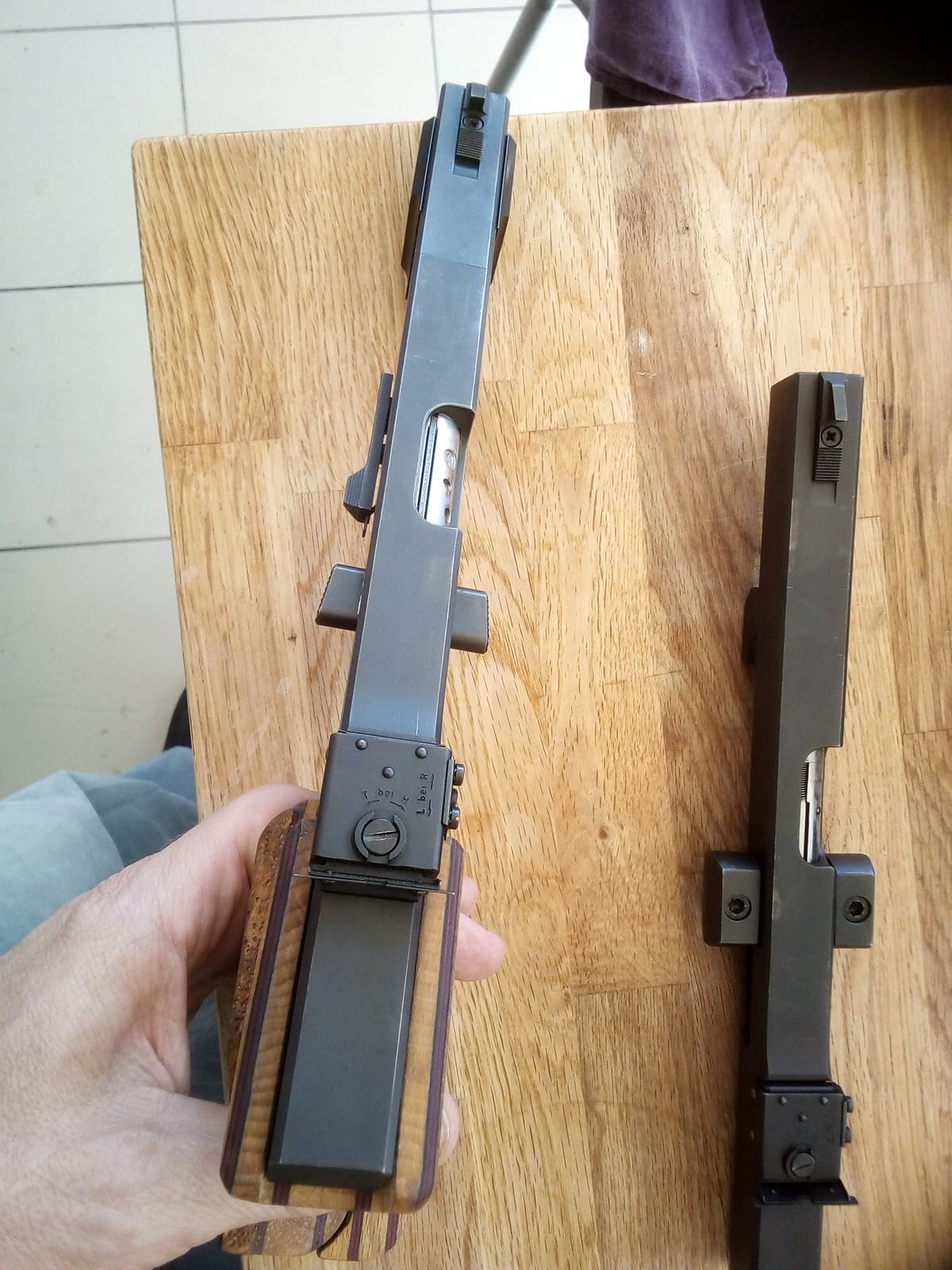 Walther GSP 22 con el Kit de conversión al 32. Lleva sus 2 cargadores por calibre, un contrapeso de 40 g. para el 22 (que va muy bien para tiro rápido), llave allen para desmontar y herramienta de ayuda de carga para el calibre 32. Están en muy buen estado. Agrupan de maravilla.