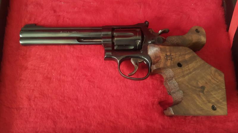 Vendo este revolver S&W del calibre 32 de 6 pulgadas por jubilación. El arma se encuentra en perfecto estado, se entrega con maletín y con cachas anatómicas.