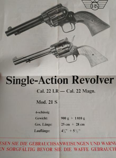 vendido retirar revolver HS Mod. 21 S Cal.22 LR 22Magn. Cañon 5.5". Alza regulable en altura y deriva.