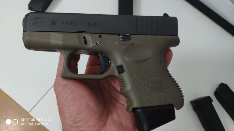 Vendo Glock 26 color verde militar muy poco uso entrego con maletín llave para cambiar miras y 5 cargadores...3 02