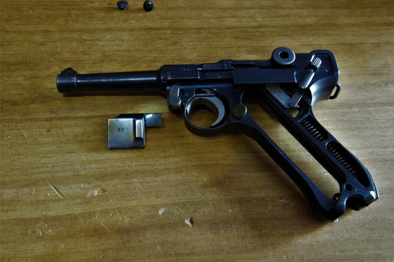 Muy buenas a todos, por necesidad de hueco vendo esta preciosa luger, en perfecto estado, para una anciana de 83 añitos, como todos los de esa edad tiene sus pegas, y son solo dos, la uña estractora que no tiene su numero y los dos cargadores que les sucede lo mismo, pero que deben tener la misma edad o muy parecida, se vende con los dos cargadores.Esta luger en concreto no se si estuvo en la division azul, en el africa korps, o en un uboat. Funciona perfectamente, tiene muy pocos disparos por que interiormente esta impecable y yo he disparado apenas 50 tiros. Vino directamente de Alemania. Mecaniza sin problemas y el estado es el que se ve, todo original con un pavon en un estado como pocos. Como se que en este foro hay gente muy especializada espero sus comentarios y si se ve alguna pega espero que me lo hagan saber.