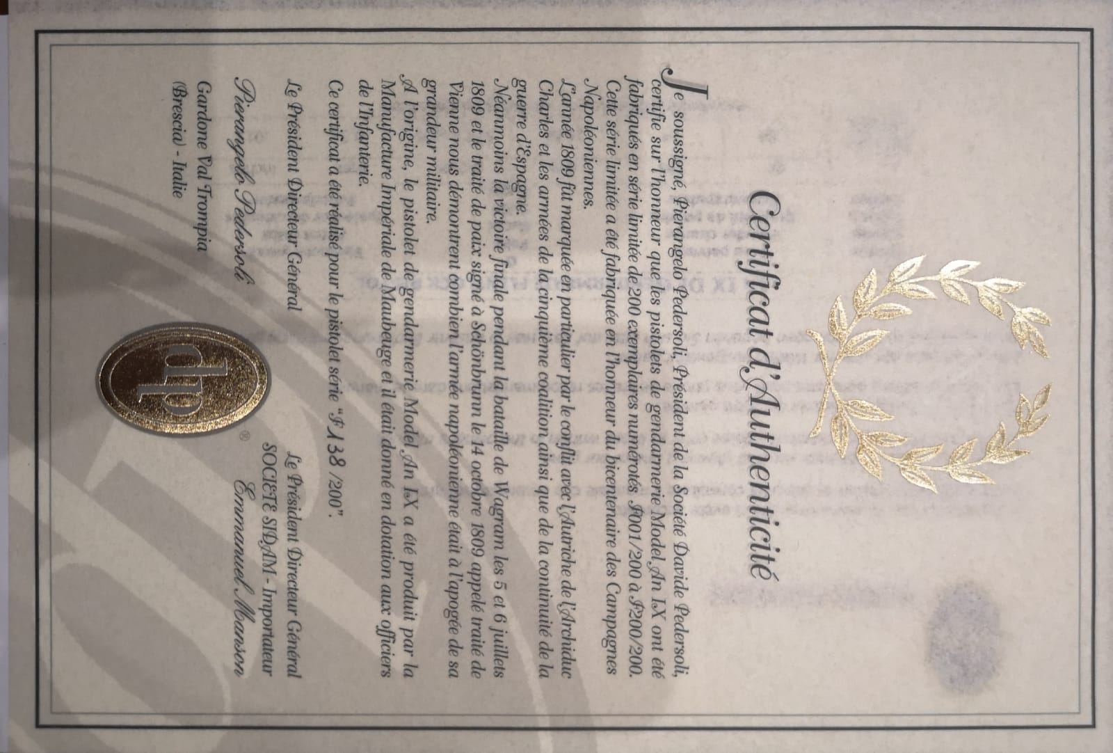 Coleccion unica a la venta y por tiempo limitado, de la firma PEDERSOLI y llamada diez años de coleccion NAPOLEON, solo se fabricaron 200 unidades y estas siete preciosidades son la F138, ni que decir que van con sus certificados de autenticidad y cajas originales etc