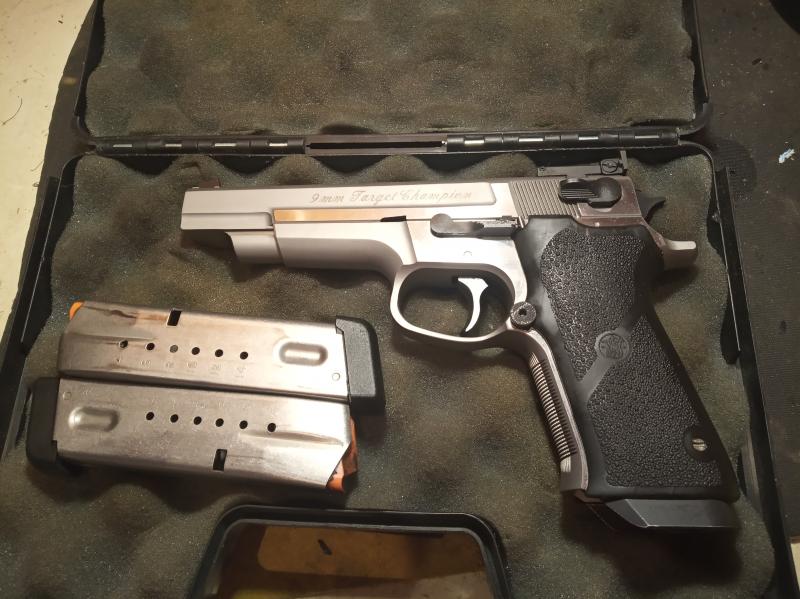 Vendo pistola Smith Wesson modelo Target Champion, 9 mm PB, en perfecto estado como nueva sin ninguna marca ni resguño, con dos cargadores y maleín.