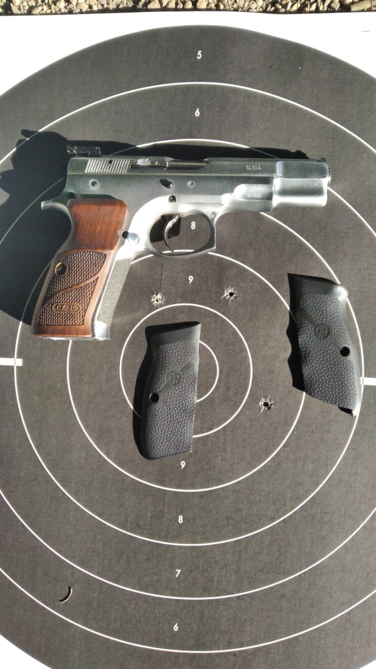 Buenas tardes, por falta de uso vendo CZ75 en muy buenas condiciones, no termino de acostumbrarme al 9mm. El arma la vendo cachas de madera, otras de goma y otras azules metalicas con su base, y dos cargadores con tope.