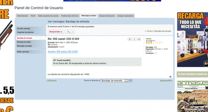Por motivos de salud un amigo del club vende esta pistola sig sauer P220 X SIX en 45 acp