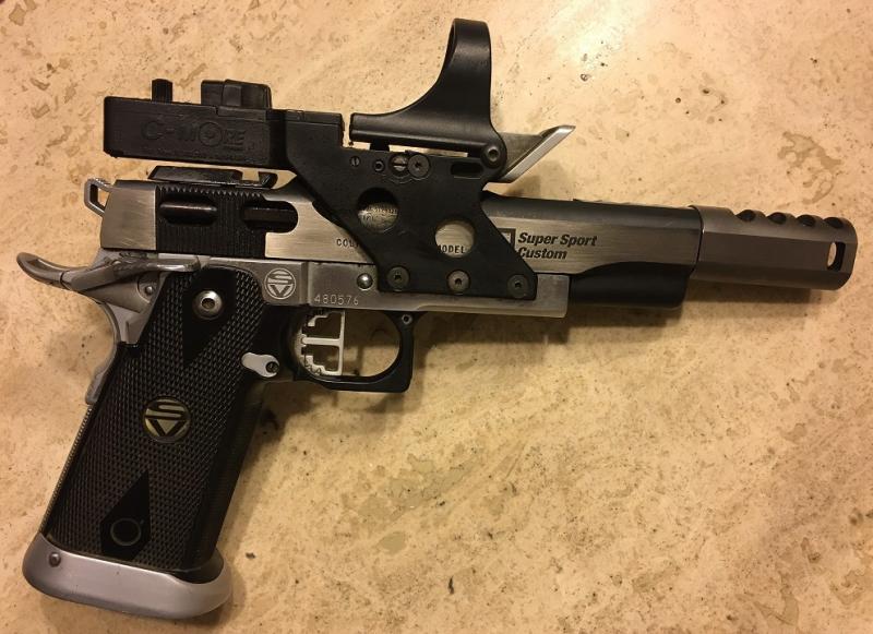 El C-More creo recordar que no se podía ajustar, no se si tiene arreglo, pero la tendencia actual sería poner una montura de unos 100€ ( https://www.ipscstore.com/es/monturas/2714-daa-c-more-rts2-2011-scope-mount.html ) más un visor pequeño que hay desde 150€ ( https://www.ipscstore.com/es/388-punto-rojo?orderby=price&orderway=asc ) . Yo si volviera a tirar es lo único que cambiaría.