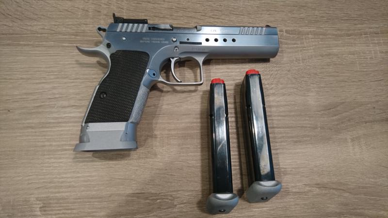 Se vende con dos cargadores, muelles de recuperación de repuesto, muelle y biela de repuesto para modificar la presión del gatillo y maletín de transporte.