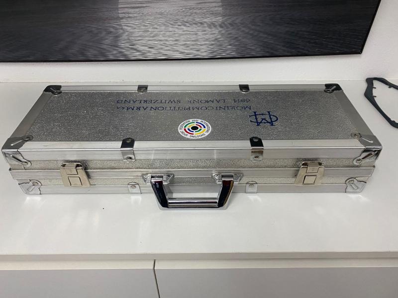 Incluyo freno de boca original y el largo de Morini, estuche de aluminio de Morini para poder llevar la pistola con el freno de boca largo instalado (también tengo el estuche de PVC original), juego de baquetas y feminelas para limpieza, destornilladores, pila en uso y otra nueva, telescopio (del Lidl 45-60/60 que llega justo pero hace su función a 50m.) con trípode.