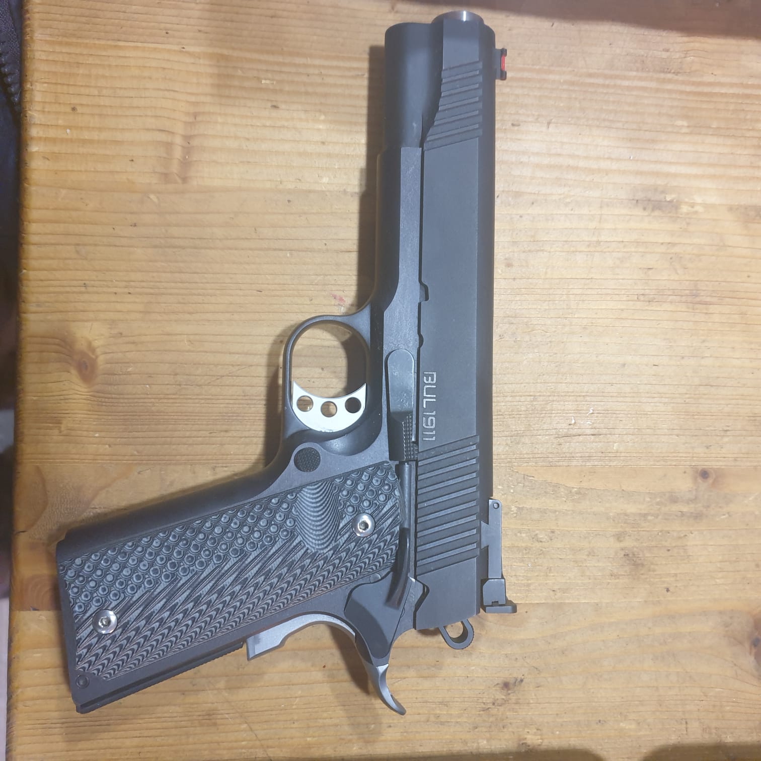 vendo bull 1911 en calibre 9mm cañon bull barrel totalmente nueva a tirado 2 cajas de municion para probarla precio 780.euros. zona madrid o toledo.