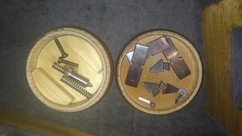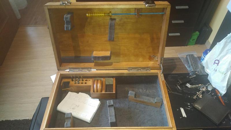 El arma viene con su maletín y útiles de limpieza. La cacha es una talla M.