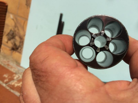 Y esto es lo que ha tirado el muchacho.Las del pistón rojo:4,6Gr de BA10,punta de .452. Las del pistón verde:8 Gr de CSB1.Punta de .452.250Gr.Cargas suaves que no hacen sufrir el armazón ni los mecanismos.Nada que ver con la munición comercial.Naturalmente todas recargadas por mí.Nunca ha disparado con polvora negra,para eso tengo las de avancarga.Y ya está.
