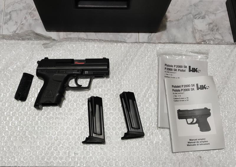 Se vende pistola Heckler and Koch p2000 sk 9mm parabellum. con un par de cargadores, maletín y un complemento para el agarre. Es pequeña, ideal para porte oculto.