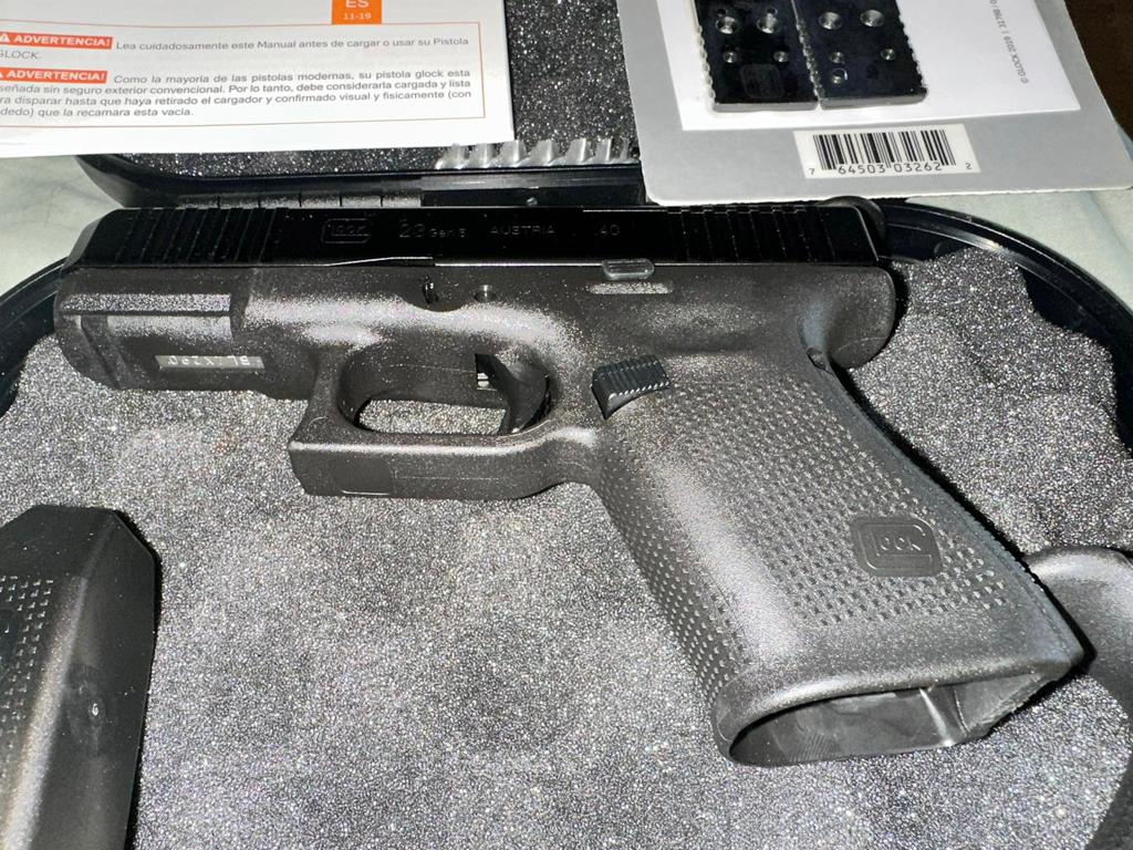 Un amigo me pide que le suba este anuncio, vende pistola Glock 23 GEN 5 FS MOS (calibre .40), comprada nueva en Armería Marcos en junio de este año, ha disparado sólo un cargador, la vende con 3 cargadores.