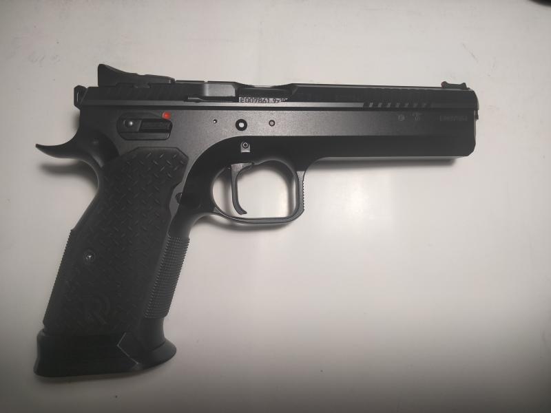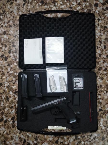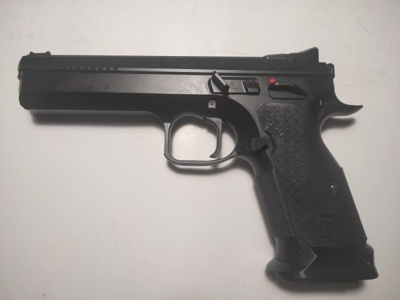 Pistola CZ TS2, tres cargadores, inserto para funda doble Alfa. El arma tiene solamente dos tiradas. Cachas DR neopreno, Apoyadedos. Se pueden enviar más fotos por privado. Se encuentra en Valencia. Precio 1500€