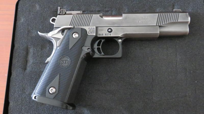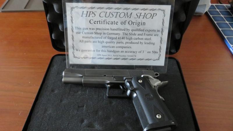 Por obligación vendo mi preciosa HPS/STI 2011 en calibre 9mm a tirado con munición recargada para precisión, su estado es muy bueno como se podrá ver en las fotos, su precisión es simplemente extraordinaria en buenas manos claro esta, el pavonado es original envejecido queda muy bien, viene con 2 cargadores el cañón y corredera fueron ajustados por un armero de renombre Alemán certificando una agrupación de 3" a 50 metros, el gatillo se cambio por uno de aluminio y ajustado a 1.100 kg, su precio son 1380€ mas portes si los ubiera.