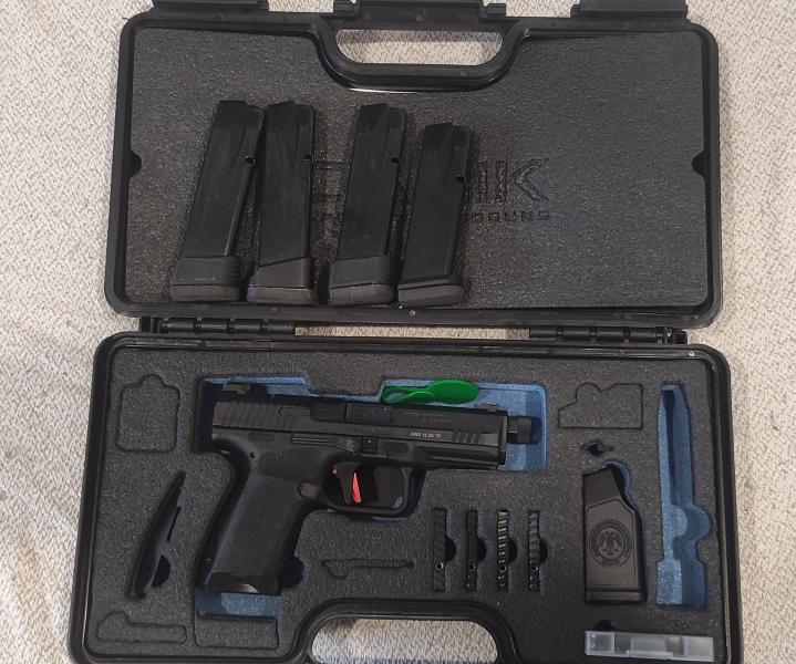 Vendo pistola canik tp9 elite combat con 4 cargadores, funda original. Sistema "Optic Ready" para colocación de visor con 4 bases incluidas, gatillo mejorado de aluminio con perfil plano Retenida de corredera ambidiestra, botón de retenida de cargador intercambiable diestro/zurdo, rail Picatinny delantero, lomo trasero intercambiable con diferentes dimensiones, indicador de cartucho en recámara, indicador de percutor armado. Apenas a tirado 1000 tiros en un año, unico propietario.