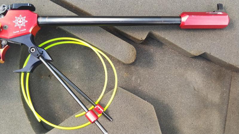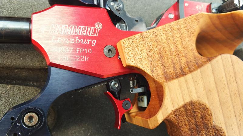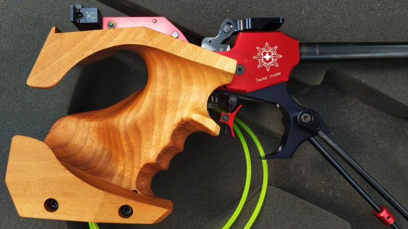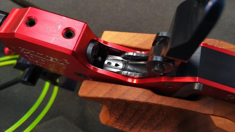 El disparador soporta dos tiempos, si se desea tirar en uno solo o dos tiempos; y se puede ajustar el peso de cada uno de ellos si se desea. Esto es importante, porque muy pocas pistolas libres permiten configurar asi el disparador.