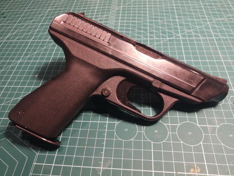 Es una pistola con cañón fijo, hexagonal, la primera en la que el armazón fue fabricado en polímero, con cargador para 18 cartuchos. Fue diseñada como arma para ser entregada a la población civil en caso de invasión de la URSS a inicios de la década de los 70s. Les dejo algunas fotos. Precio: 300 euros.
