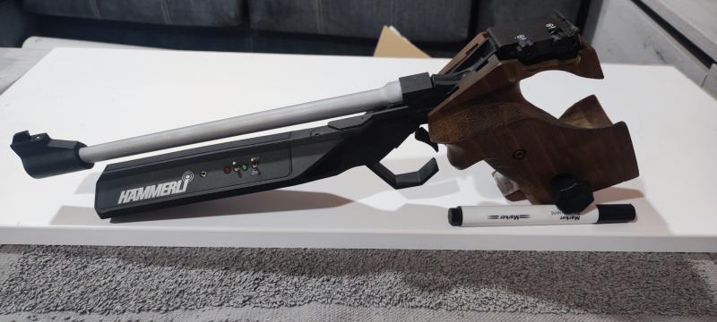 Magnifica pistola, tuve la Hammerli 120, la 150, perfectas, la primera que vi parecía del espacio. Lo dicho el que la compre disfrutará como un enano, es la modalidad reina del Tiro Olímpico. Suerte con la venta.