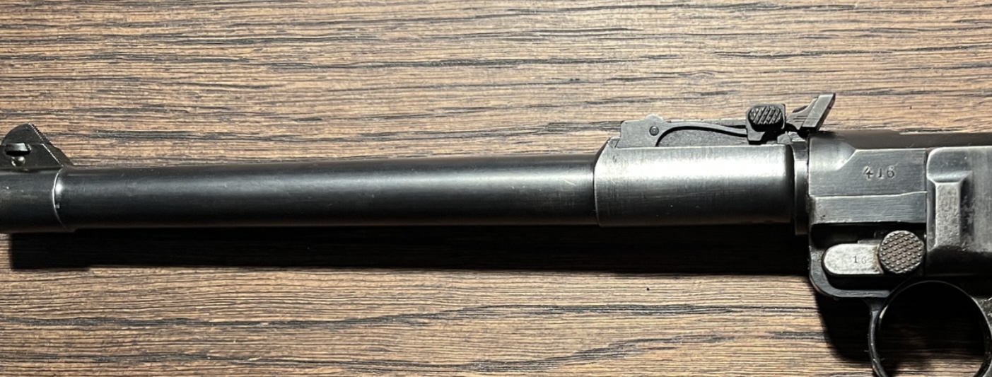 Buenas, el cañón es de una Luger de artilleria original, pero estoy seguro que es de diferente numeración al armazón. Asi que el arma YO la considero que es de doble numeración, además, al levantar el alza, se ve que hay una numeración que no coincide con la que pone debajo del cañón.