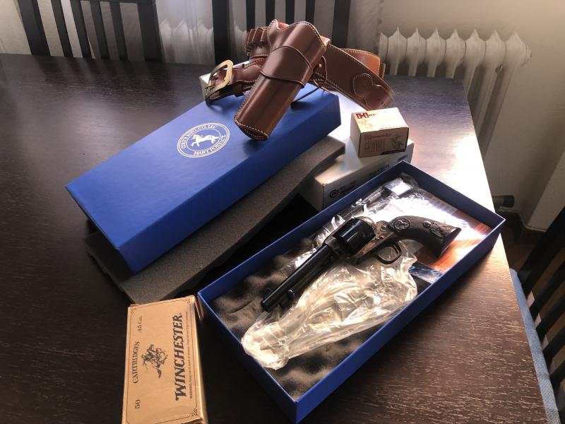Buenos dias, Vendo COLT Single Action, calibre 45 LC, en 5 1\2 pulgadas, completamente nuevo sin usar con su grasa original, caja autentica de Colt con todos los accesorios, cartuchera y canana de la empresa Galco de USA modelo Ranger completamente nueva y otros componentes.