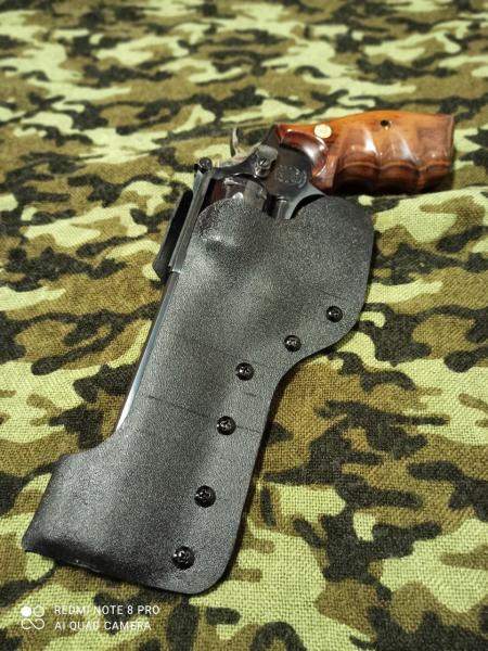 Revolver smit wesson modelo 14-5 6" y calibre 38 spl con 11 cargadores de pla y 9 fundas , funda de kydez de zurdo y la de cuero de diestro .