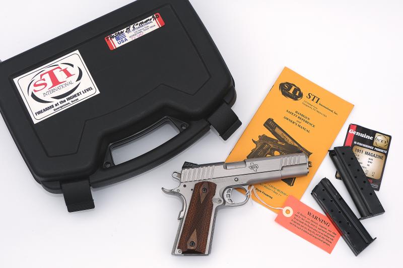 Está construida sobre un armazón Government de acero inoxidable STI 1911, con una banda delantera con textura STIsppled, lomo de empuñadura cuadriculado y guardamonte rebajado. Sus controles incluyen un seguro manual lateral de acero inoxidable de STI International y un seguro de empuñadura high-rise beavertail con alivio para el nudillo.