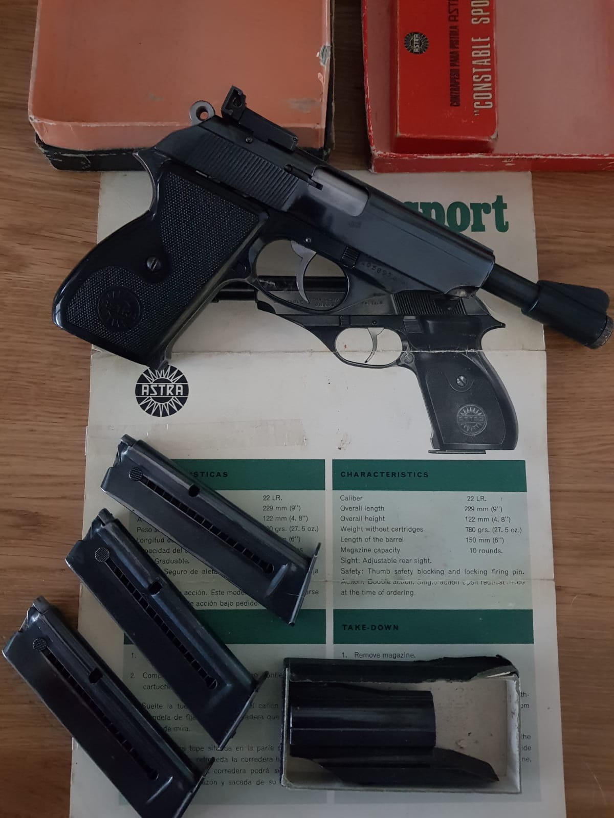 Se vende esta impecable Astra Constable Sport tipo 1 en 22lr. con su caja original en buen estado, 3 cargadores y su contrapeso con la caja original.