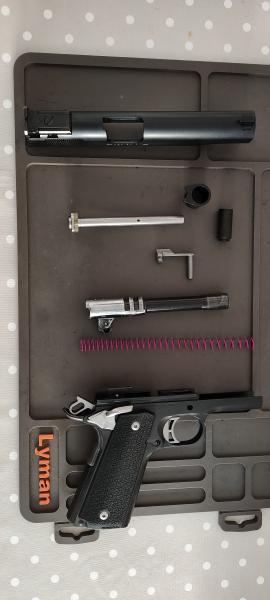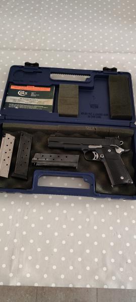 Vendo mi pistola Colt 1911 A1 serie 80 del 9 parabellum en muy buenas condiciones de pavonado y accesorios de mejoras como se podrá ver en las fotos, lleva alza micrométrica con su punto de mira LPA, seguro ambidiestro, martillo aligerado y un largo etc.. viene con estuche original y 3 cargadores 2 de 9 tiros y 1 de 10 tiros nuevo, el arma se ha utilizado para precisión y munición recargada, nunca para IPSC, agrupa muy bien y precisa dependiendo del tirador claro está, se puede ver y probar sin compromiso en Alcoy, precio 1100€ más portes.