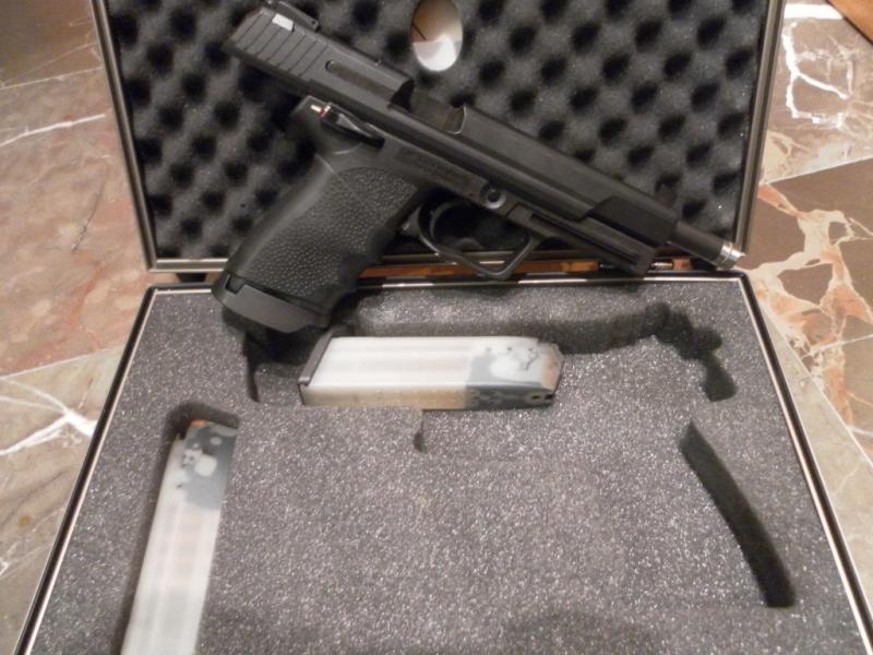 hola , esta pistola hk elite cal 9mm , cañon de 6" tiene una precision sorprendente , solo utilizada para precision , lleva montado un grip q le va estupenda, se acompaña de su maletin original hk 2 cargadores y su manual ,gomas de recambio para el cañon y blancos de prueva. 700€ portes incluidos.