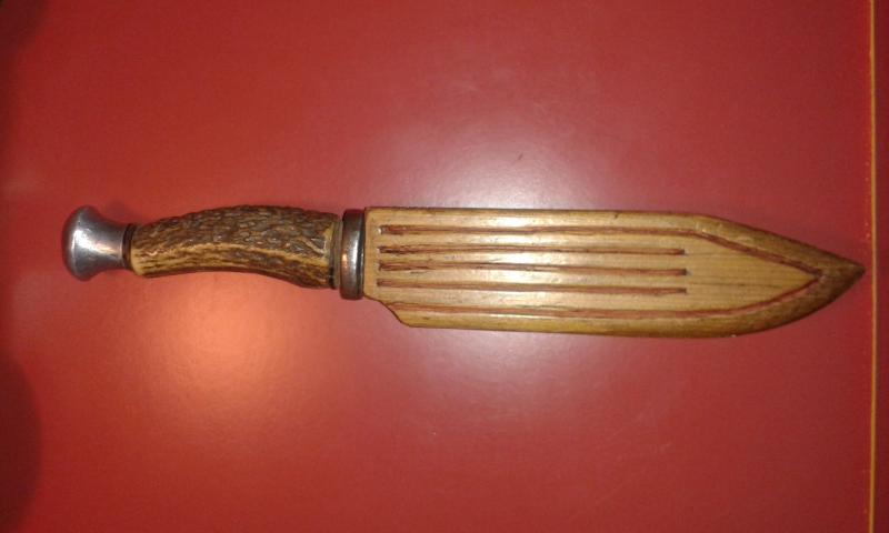 Vendo este cuchillo antiguo, el mango es de asta de ciervo y la funda esta confeccionada en madera ( muy curioso).