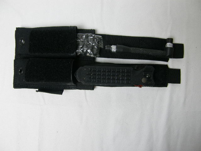 Funda de Nylon 1000D con dos opciones; una de llevar la navaja abierta como un cuchillo y otra funda desmontable superior que permite portar la navaja plegada.SISTEMA MOLLE.