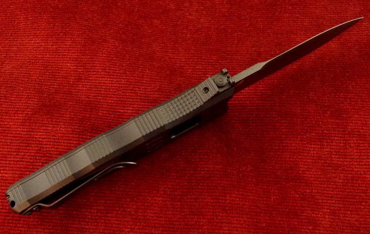 EMPUÑADURA DE ALUMINIO ANODIZADO, CON CLIP DE ENGANCHE ( acero inoxidable 420J2B ), Y HUECO PARA COLOCAR CORDON FIADOR. SISTEMA DE APERTURA Y CIERRE "DOBOLOCK" CON BLOQUEO DE LA HOJA.