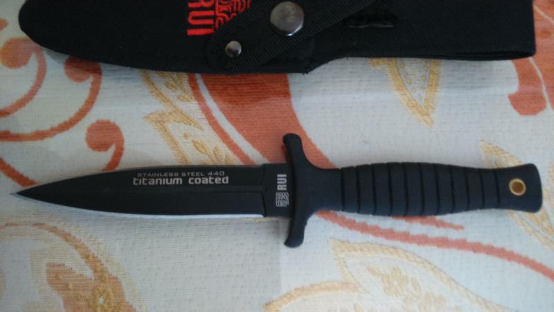 Cuchillo tactico marca RUI, staninless steel, titaniun Coated, recubierto de titanio, doble filo.