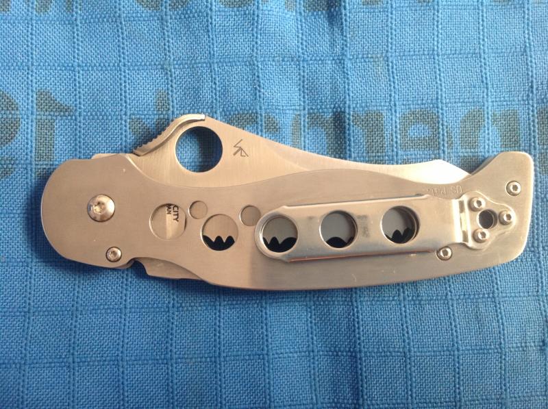 Posee además el sistema de bloqueo por compresión, muy cómodo de usar y muy seguro. Por otra parte, tanto el accionamiento del seguro como la apertura de la hoja son extremadamente suaves, creo que el más suave de todas las Spyderco que he probado ( y tengo unas cuantas).