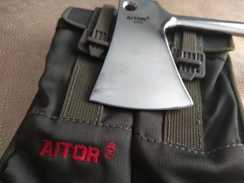 Hacha Aitor años 80, nueva a estrenar. Construcción de una sola pieza, lo que la convierte en indestructible , capuchón de cuero grueso y cierre para proteger filo y portar al cinturón.