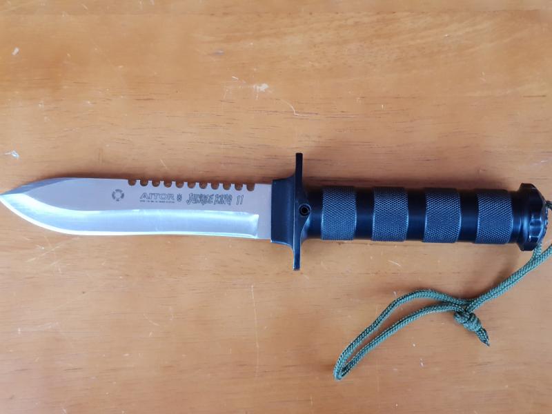 Cuchillo Aitor Jungle King II, con muy poco uso (se habrá sacado al campo 5 o 6 veces). Tiene señales de uso, pero nada que un buen afilado y pulido no solucione.