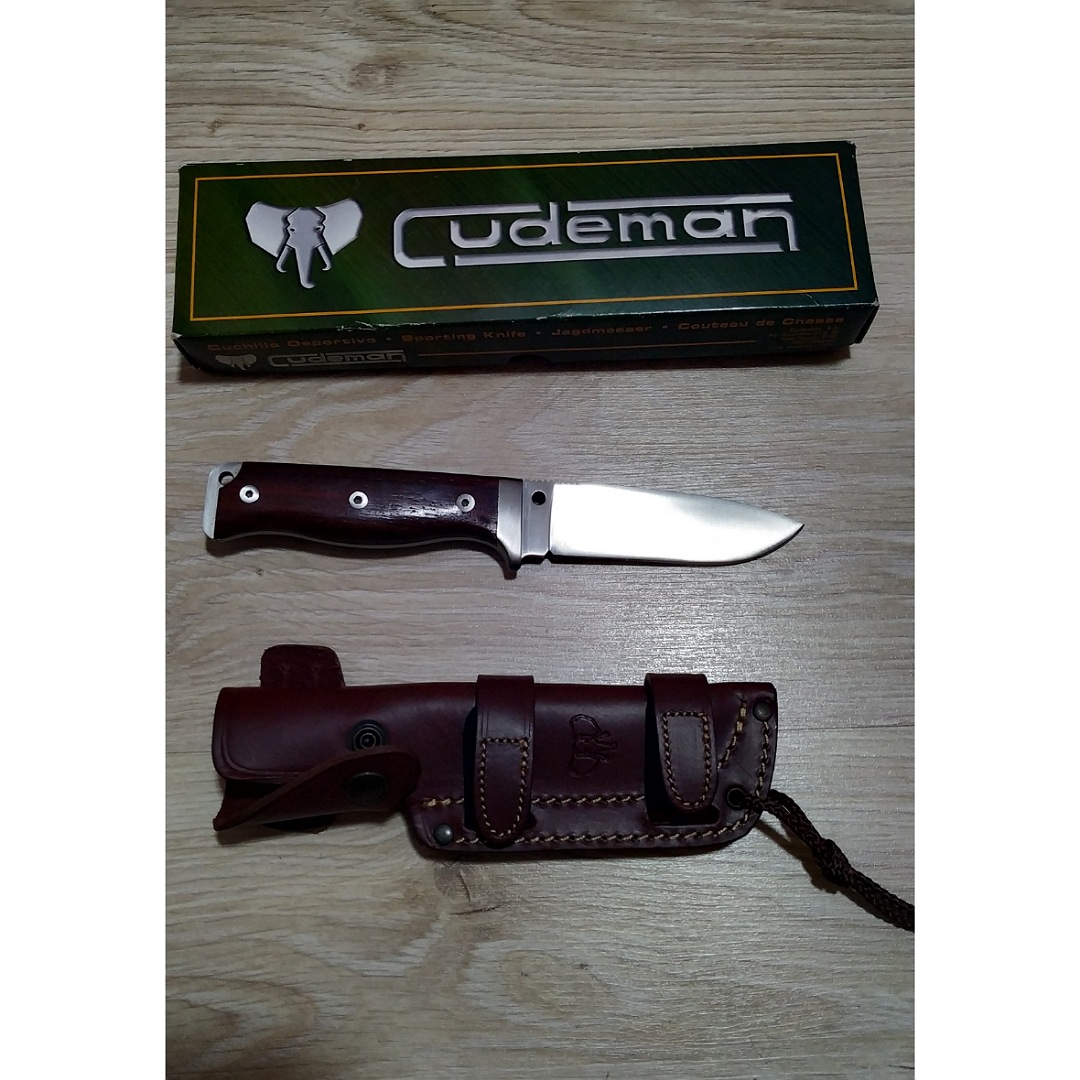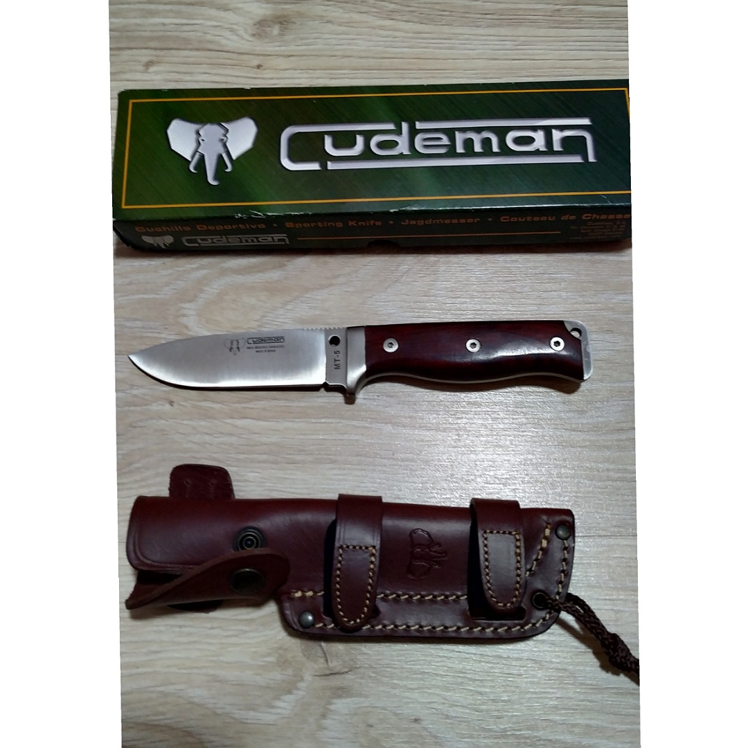 Se pone en venta un cuchillo de la casa CUDEMAN modelo MT5 con cachas en madera de cocobolo y acero MOVA el cual no tiene uso, literal! Sólo reseñar que tiene una fisura la madera donde se ve en una de las fotos que no afecta a la funcionalidad y no es muy apreciable pero hay que decirlo todo. Así mismo se acompaña de su funda original en vaquetilla multiposicion de color marrón y su caja original. El precio son 45 euros puesto en destino a través de agencia o se puede valorar cambio por algún otro cuchillo.