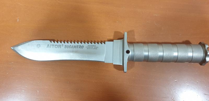 Hola vendo cuchillo aitor bucanero. El cuchillo tiene señales de uso pero esta en bastante buen estado los accesorios del mango nunca se han abierto.pido por el 200 euros con el envio incluido.