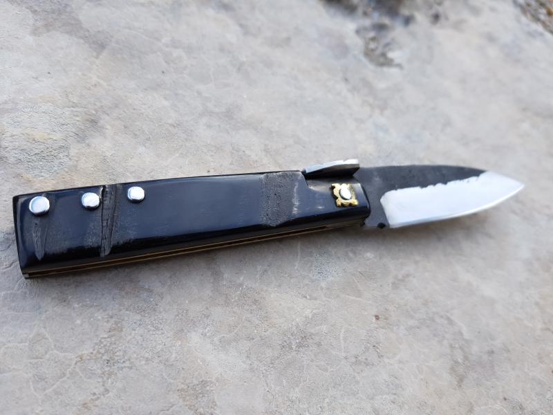 Por aclarar términos y no dar lugar a confusión, he de manifestarte que esa hoja NO acaba en "brut de forge", pues no ha sido forjada y por tanto no lleva las marcas del martillo cuando golpea la hoja.