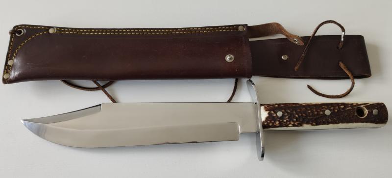 Muela Bowie. Hoja de 26m y 40cm en total (aprox). Sin marcaje. Tanto en cuchillo como la funda estan sin uso. Salen de coleccion.