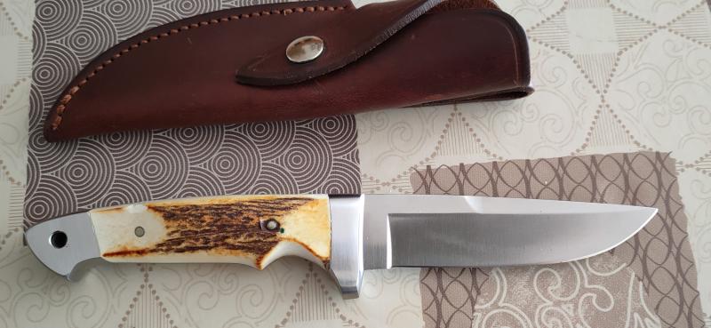 Buenas tardes me encargan que ponga de nuevo en venta este magnífico cuchillo enterizo,en acero 440C y cachas de cuerno de venado, fabricado en Solingen por Boker,funda de cuero de la misma casa.200€