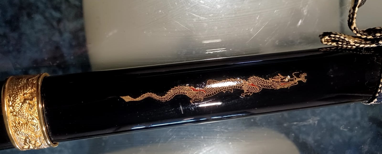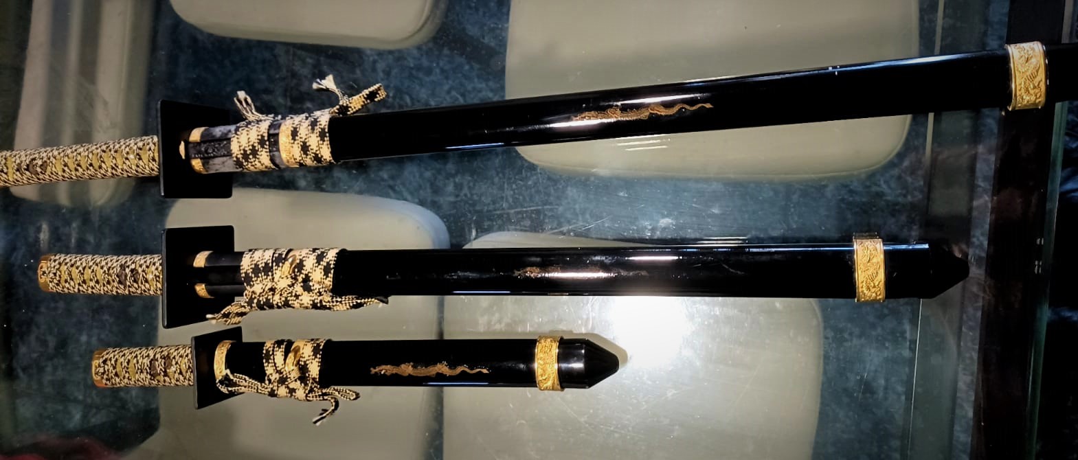 Anuncio de venta de juego de 3 Katanas con 3 cuchillos pequeños en la funda.